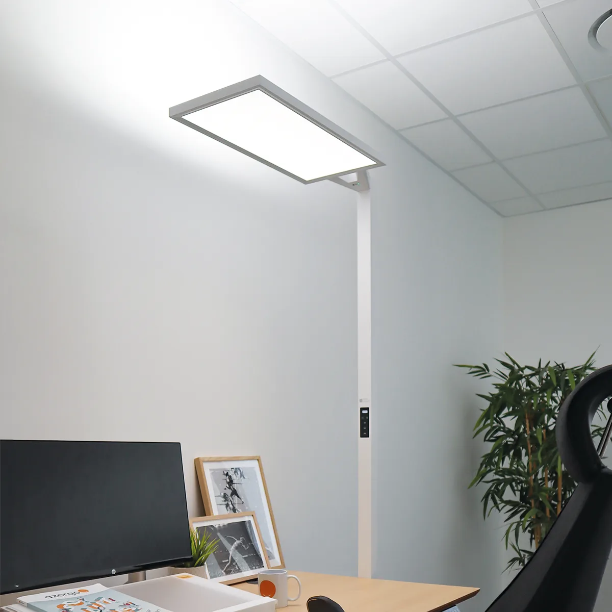 Alliant design épuré et technologie LED de pointe, il délivre 85 W en indirect et 15 W en direct, soit environ 13 500 lumens à 135 lm/W. Sa dalle LED à prisme de diffusion garantit une lumière douce, uniforme et sans reflets.