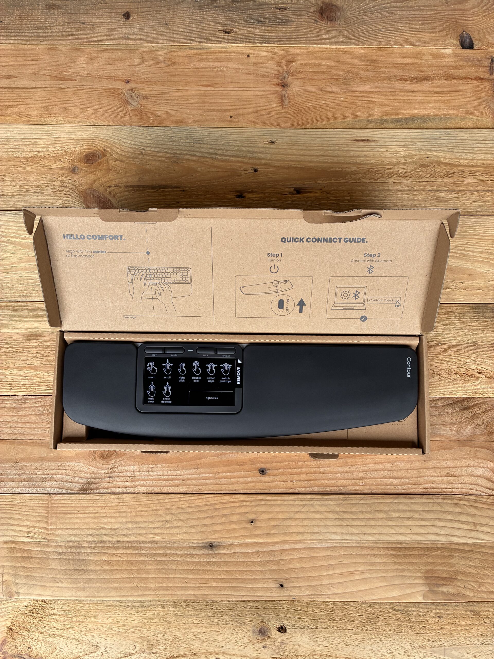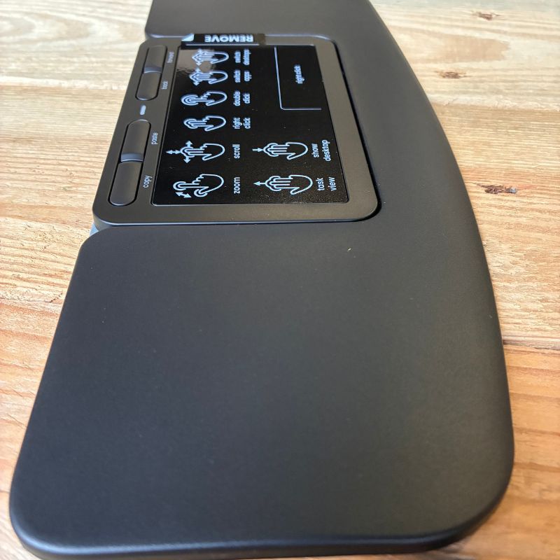 Le pavé tactile ergonomique Contour Touch se positionne devant le clavier pour garder les mains dans l’axe du corps et limiter les mouvements inutiles. Ce pointage central aide à réduire les tensions aux épaules, au cou et aux poignets, tout en améliorant le confort au travail.
